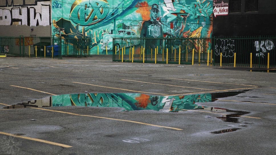 I’m especially pulled to reflections that behave unexpectedly. Glass that burns brighter than the street it’s copying. Water that flips the city upside down.